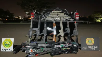 PF e PM apreendem drogas e simulacros de armas após travessia ilegal no Rio Paraná, em Foz do Iguaçu