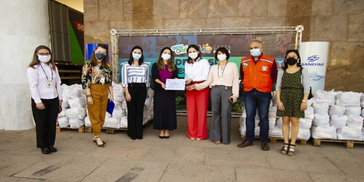 Empregados da Companhia de Saneamento do Paraná (Sanepar) participaram da campanha Cesta Solidária Paraná, promovida pelo Governo do Estado, com a doação de 1.907 cestas básicas, que somaram 22.884 toneladas de alimentos. Esses alimentos poderão ajudar cerca de 80 famílias ao longo de um mês.