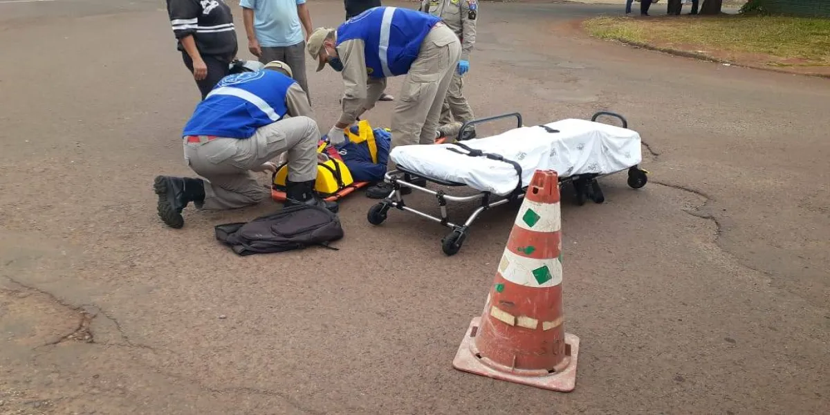 De acordo com populares, a vitima seguia pela Rua Berlim, momento quem que foi acessar a Rua João Wichoski acabou sendo fechado por outro automóvel, sofrendo a queda.