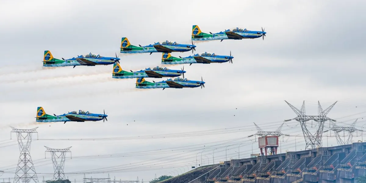 Pilotos de elite da Força Aérea Brasileira (FAB) procuravam um local fora de sua base, em Pirassununga (SP), para treinar, fazer provas de voos por instrumentos e fotografar a nova geração do A-29 Supertucano em locais icônicos, onde a aeronave atualmente utilizada pelo grupo ainda não havia sido registrada. A oportunidade veio com um convite da Itaipu Binacional, que completa 47 anos na próxima segunda-feira (17) e pediu à Esquadrilha da Fumaça, que faz 69 anos nesta sexta (14), para celebrar os dois aniversários riscando o céu da fronteira.