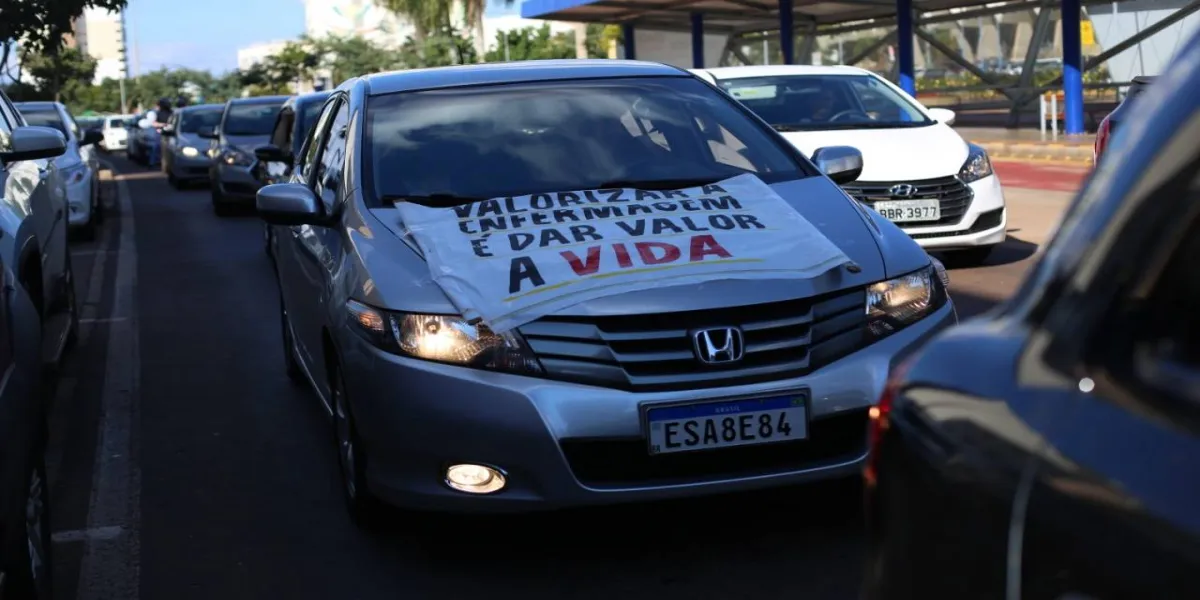 CARREATA - A carreata reuniu profissionais de Enfermagem e percorreu a Avenida Brasil, até chegar a Prefeitura de Cascavel. “Estou na Enfermagem há 11 anos e nunca vi um movimento desse tamanho. Acredito que a pandemia favoreceu o reconhecimento da categoria, pois mais do que nunca estamos dando todo nosso suor para salvar vidas. E a luta não para por aqui, continuaremos até chegarmos ao nosso objetivo, que é a aprovação da PL2564\2020”, diz uma das organizadoras da carreata, a técnica de Enfermagem, Karine Fernandes Gonçalves.