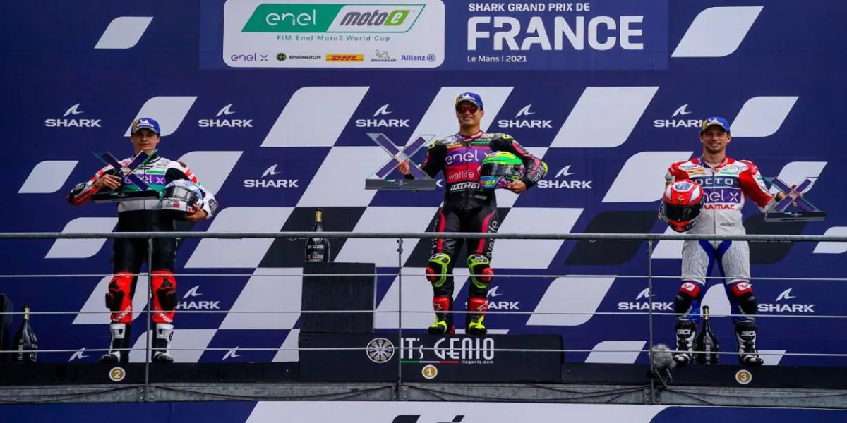 Uma ultrapassagem na curva final da última volta assegurou ao brasileiro Eric Granado a vitória no Grande Prêmio da França de MotoE, realizado neste domingo (16) no circuito de Le Mans. Foi o primeiro triunfo do paulista na temporada 2021 da categoria de motos elétricas do Mundial de Motovelocidade.