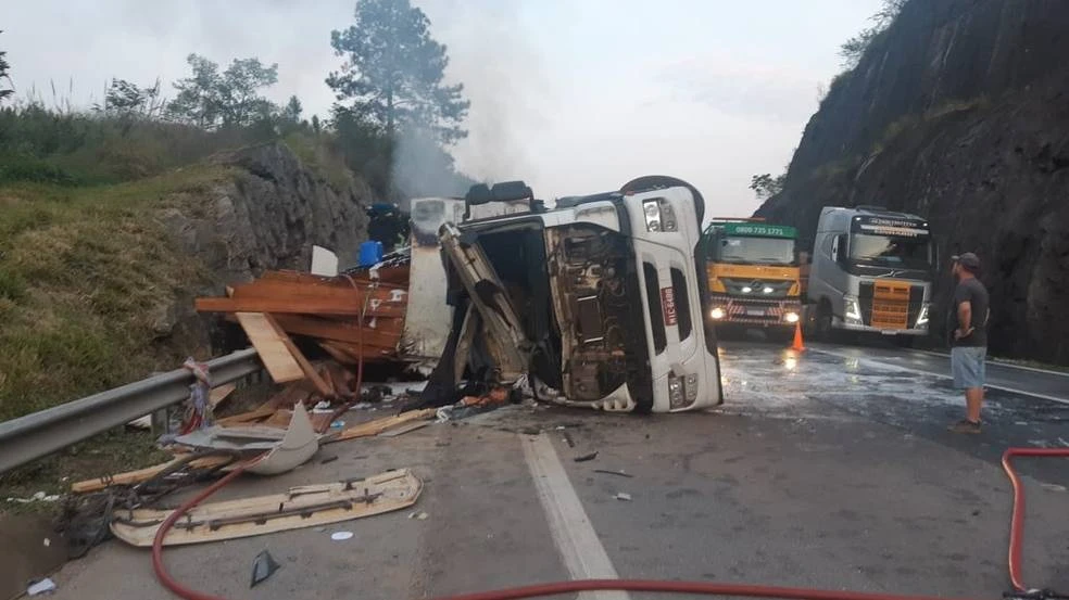 Além da equipe de resgate da empresa que administra a rodovia, o Corpo de Bombeiros e a Policia Rodoviária Federal (PRF) auxiliaram na ocorrência. Em razão do acidente, as pistas no sentido Sul da rodovia tiveram que ser interditadas e houve registro de retenção de 10 quilômetros.