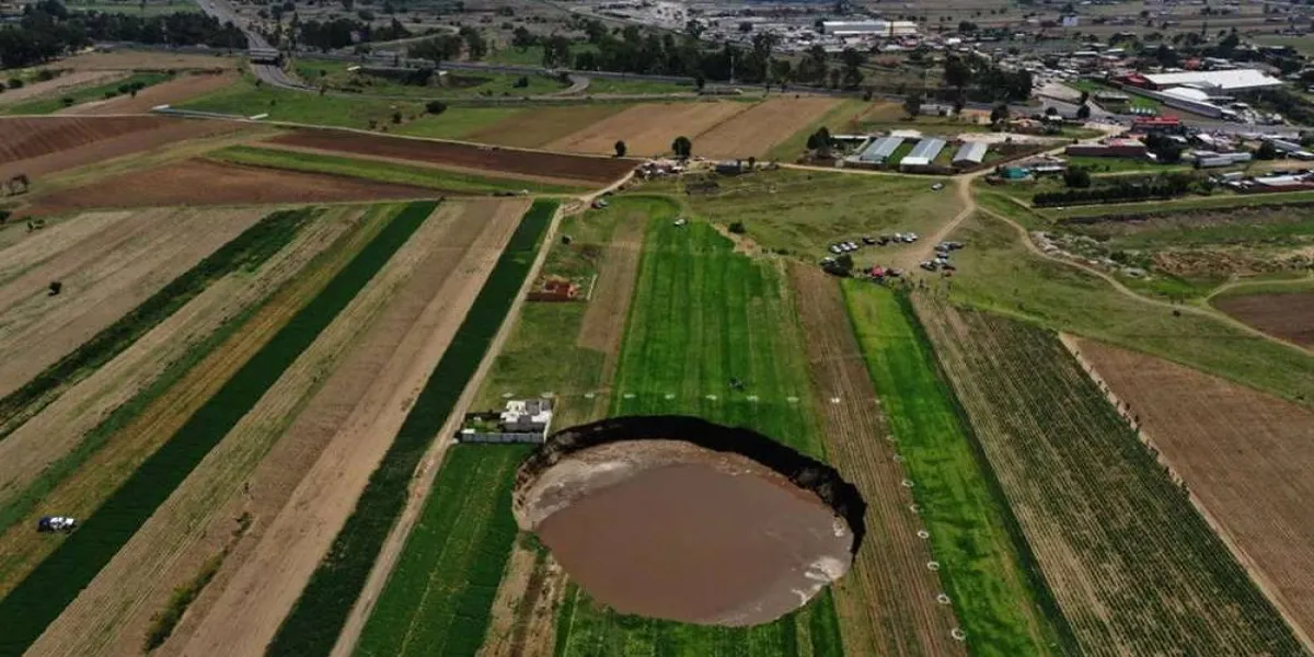 Uma imensa cratera em uma região agrícola do México vem aumentando metros por dia e assustando a população local. Registrada pela primeira vez em 29 de maio em Santa Maria Zacatepec, no estado de Puebla, a abertura inicialmente media 5 metros, mas no momento de publicação dessa matéria já alcançava 100 metros de diâmetro e 20 metros de profundidade, enquanto especialistas ainda não possuem uma explicação para o misterioso fenômeno, que já atingiu a casa de uma família no local.