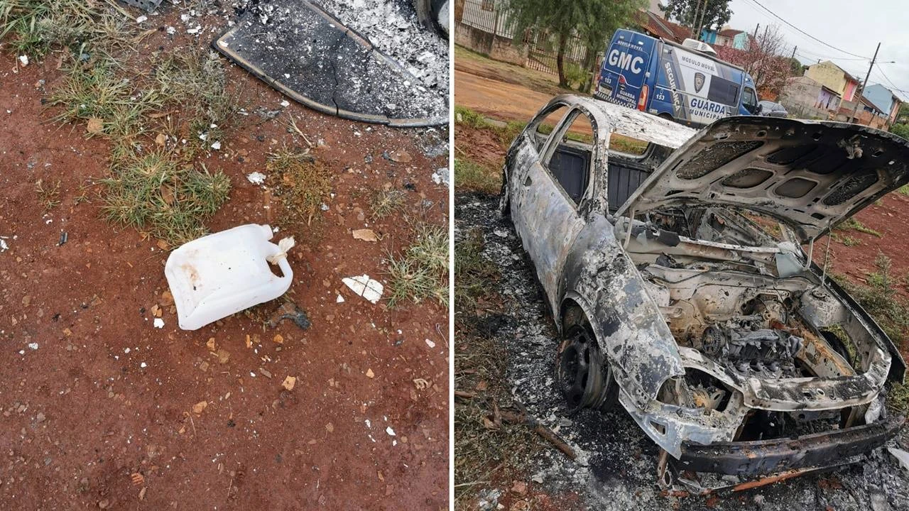 Uma equipe da Guarda Municipal localizou na manhã deste domingo (27), um veículo totalmente queimado na Rua Agenor de Mello no Loteamento Sanga Funda em Cascavel.