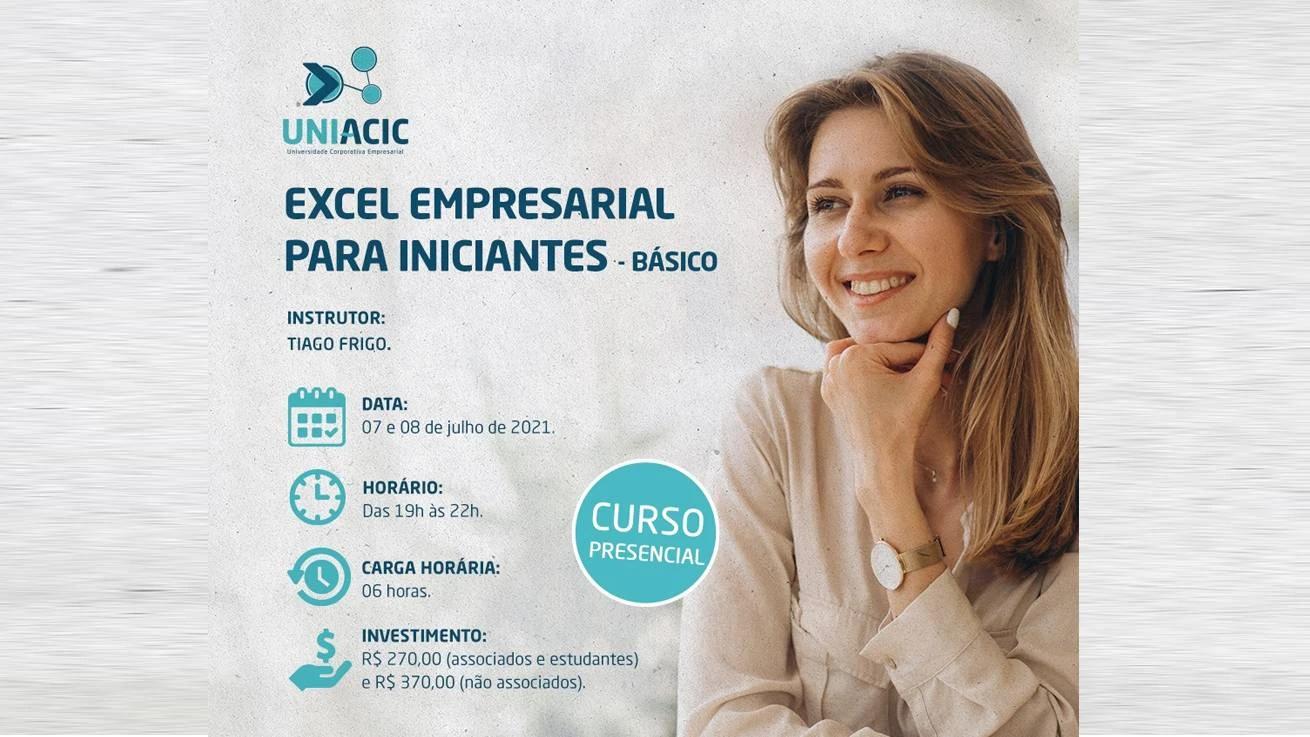 A Uniacic está com inscrições abertas para o curso Excel empresarial para iniciantes (básic0), agendado para os dias 7 e 8 de julho, das 19h às 22h, com Tiago Frigo. Já nos dias 12, 13, 14 e 15 de julho, também das 19h às 22h, Rejane Novello vai comandar o treinamento Como falar bem e melhorar a sua oratória. Autoconhecimento e inteligência emocional será apresentado de 13 a 15, das 19h às 22h, por Lorrana Menezes.