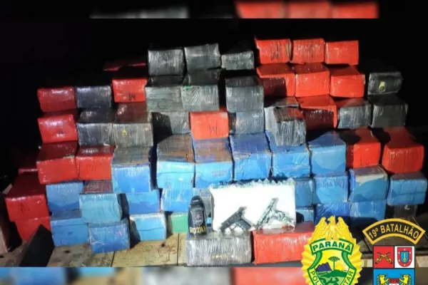 Os militares receberam uma denúncia e, enquanto realizavam patrulhamento pelo município, perceberam uma movimentação suspeita em uma residência, no bairro Mini Parque Industrial. Foi então realizada a abordagem e, nas buscas, foram localizados diversos fardos empilhados nos fundos do terreno, em uma construção, contendo maconha, além de duas pistolas de calibre 9 mm e 120 munições. Ao todo, foram apreendidos 2.720 kg do entorpecente e 2 pessoas foram encaminhadas para os demais procedimentos.