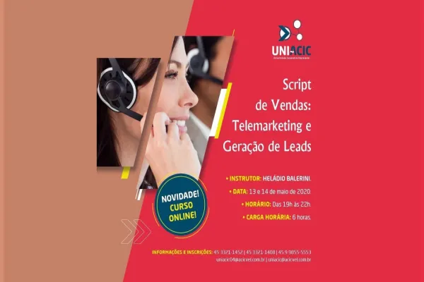 O consultor e empresário Heládio Balerini é o instrutor convidado para repassar os conteúdos do curso Script de vendas: telemarketing e geração de leads. O treinamento será on-line, novidade que a Uniacic (Universidade Corporativa da Acic) implantou desde a última semana.