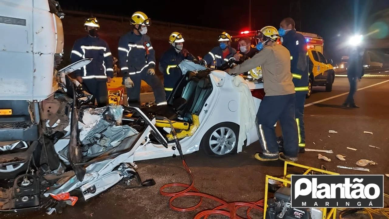 Um homem ficou preso nas ferragens de um carro após dirigir na contramão e bater em um caminhão, na Rodovia PR-317, em Maringá, na noite desta quarta-feira (07). O acidente ocorreu nas proximidades do Aeroporto de Maringá, por volta das 20h35.