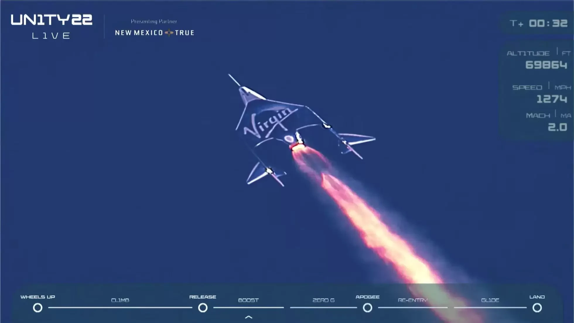 No ápice de sua trajetória, a 86,1 km de altitude, os ocupantes da VSS Unity experimentaram “gravidade zero” e se juntaram a uma lista de astronautas dos EUA, Europa, Rússia e China atualmente em órbita. Durante quatro minutos, tivemos nada menos do que dezesseis pessoas no espaço.