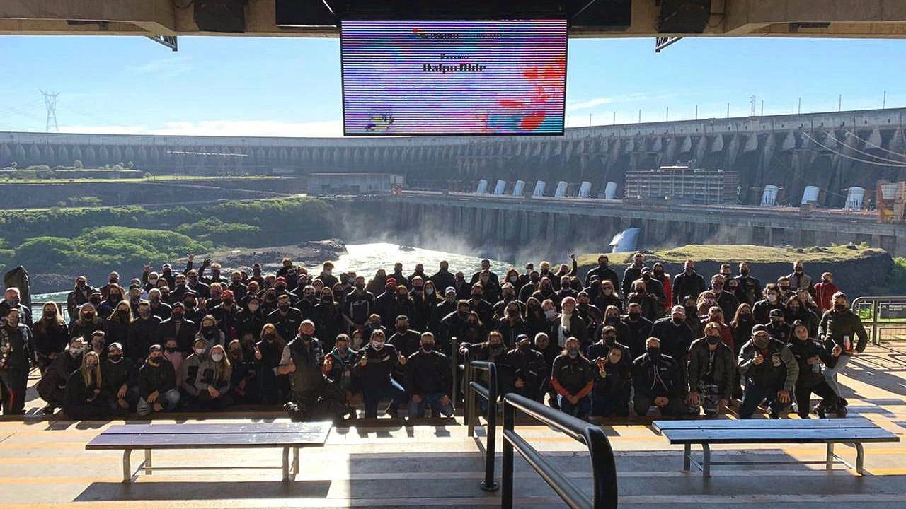 A megausina que mais produziu energia elétrica no mundo, na fronteira do Brasil com o Paraguai, foi o cenário perfeito para um passeio sobre duas rodas na manhã gelada desse domingo (18). A incursão teve 187 pessoas inscritas, que percorreram a usina de Itaipu em 114 motocicletas, entre participantes e equipes de apoio.