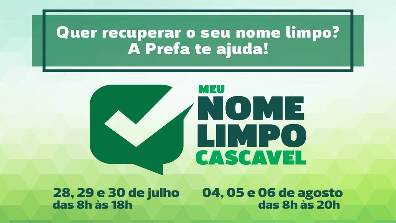 Além da Secretaria de Desenvolvimento Econômico (Semdec), a campanha envolve a Acic, Amic e Sindilojas. As ações da campanha “Meu Nome Limpo” acontecerão nos dias 28, 29 e 30 de julho e de 4 a 6 de agosto, quando as pessoas poderão fazer consultas gratuitas ao SPC, Serasa e SCPC. Na segunda semana da campanha, o horário de atendimento será estendido, das 8h até as 20h. Na primeira semana o atendimento será das 8h às 18h.