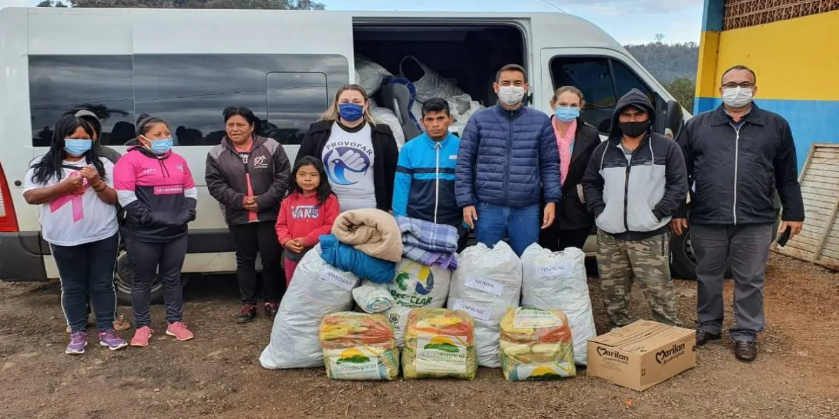A Secretaria de Assistência Social e o Provopar de Cascavel doaram alimentos, cobertores e roupas para indígenas da Aldeia Rio das Cobras, em Nova Laranjeiras. Na manhã desta quarta-feira (21), o secretário Hudson Moreschi e a coordenadora do Provopar, Neia Alberton, estiveram no aldeamento para entregar os materiais.