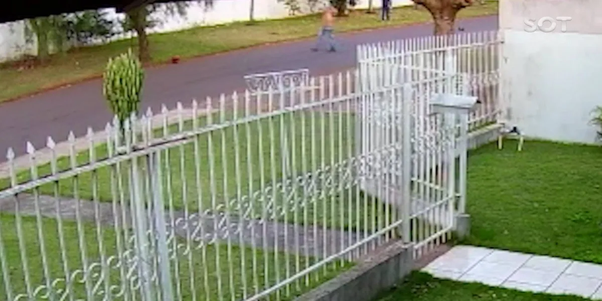 No vídeo é possível ver a mulher caminhando pela Rua Nova Santa Rosa e na sequência sendo abordada por dois homens em uma motocicleta. Ela entra em luta corporal com os assaltantes e é agredida a capacetadas e chega a cair no chão.
