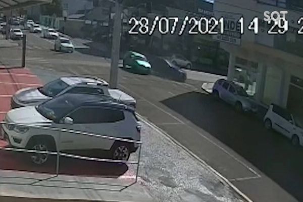 Nas imagens é possível ver o momento exato da colisão, o automóvel Gol seguia pela Rua Barão do Cerro Azul e o Sonata trafegava pela Rua Rio de Janeiro, no cruzamento das vias aconteceu a batida.