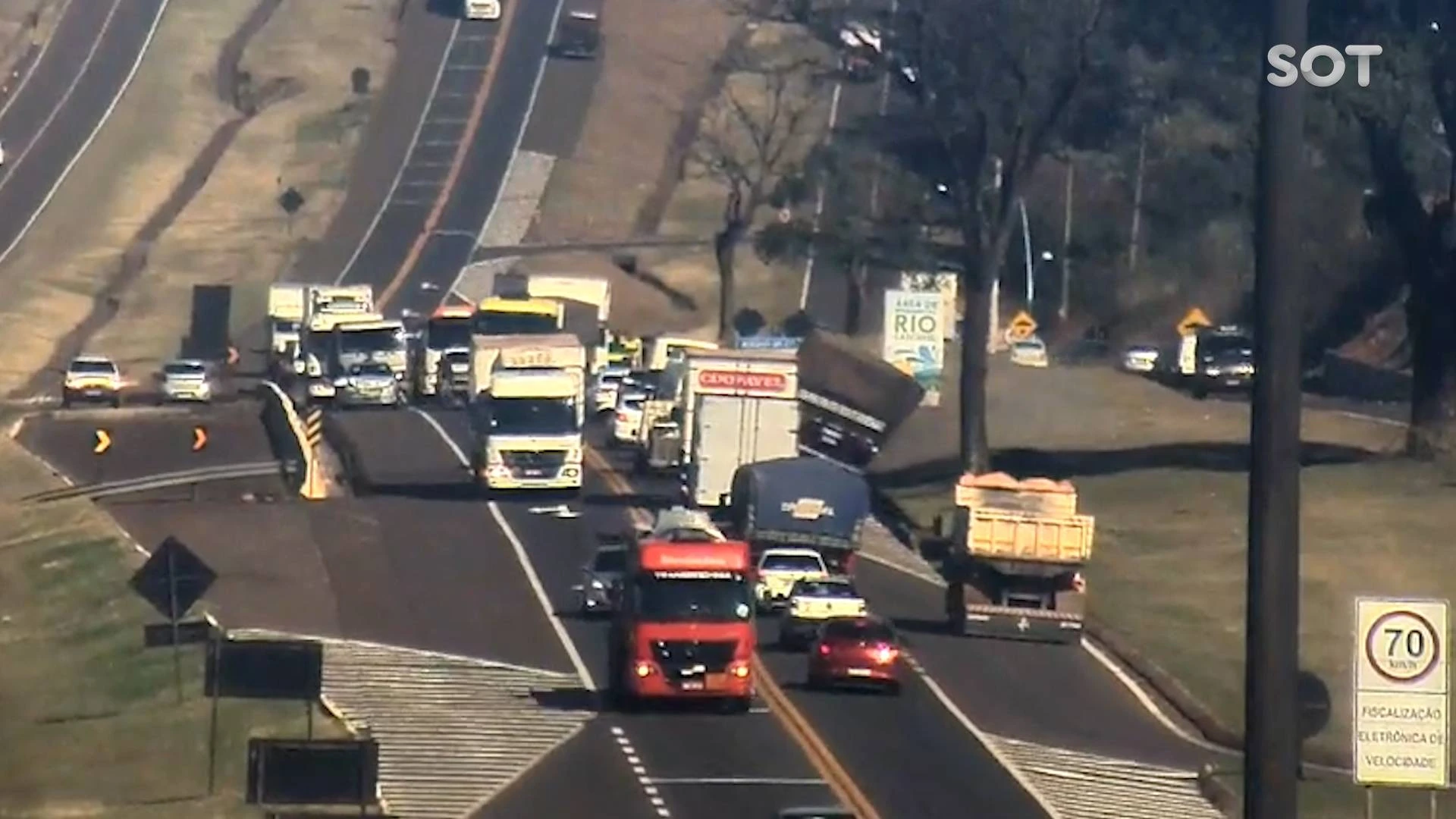 A câmera de monitoramento da concessionaria que administra a rodovia BR-277, registrou na manha desta quarta-feira (28), o tombamento de uma carreta nas proximidade de uma colisão em Cascavel.