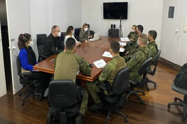 Na terça-feira, (27/07) policiais militares do BPFRON - Batalhão de Polícia de Fronteira se reuniram com os membros do Centro de Excelência para Redução de Oferta de Drogas Ilícitas da SENAD - Secretaria Nacional de Políticas sobre Drogas, do Ministério da Justiça e Segurança Pública, na sede do Batalhão em Marechal Cândido Rondon/PR.