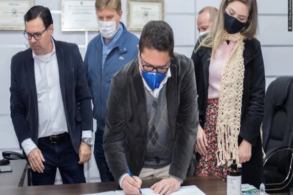 O novo vereador assinou o termo de posse na presença do presidente da Câmara, Alécio Espínola (PSC), do presidente do PTB e ex-vereador Nelsinho Padovani, do vereador Celso Dal Molin (PL), do secretário de Saúde Miroslau Bailak e do coordenador do Território Cidadão Robson Macanhão, os dois últimos também filiados ao PTB. Ainda participou da cerimônia a equipe de assessoria do gabinete do Professor Santello, que atuará junto com Vilanova.