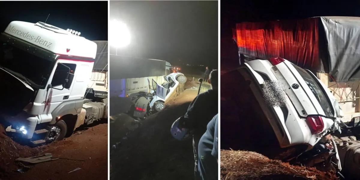 Um gravíssimo acidente de trânsito foi registrado na noite desta terça-feira (03), na PR-317, entre Toledo e Assis Chateaubriand. A colisão envolveu um VW Gol, com placas de Jesuítas e um Bitrem.