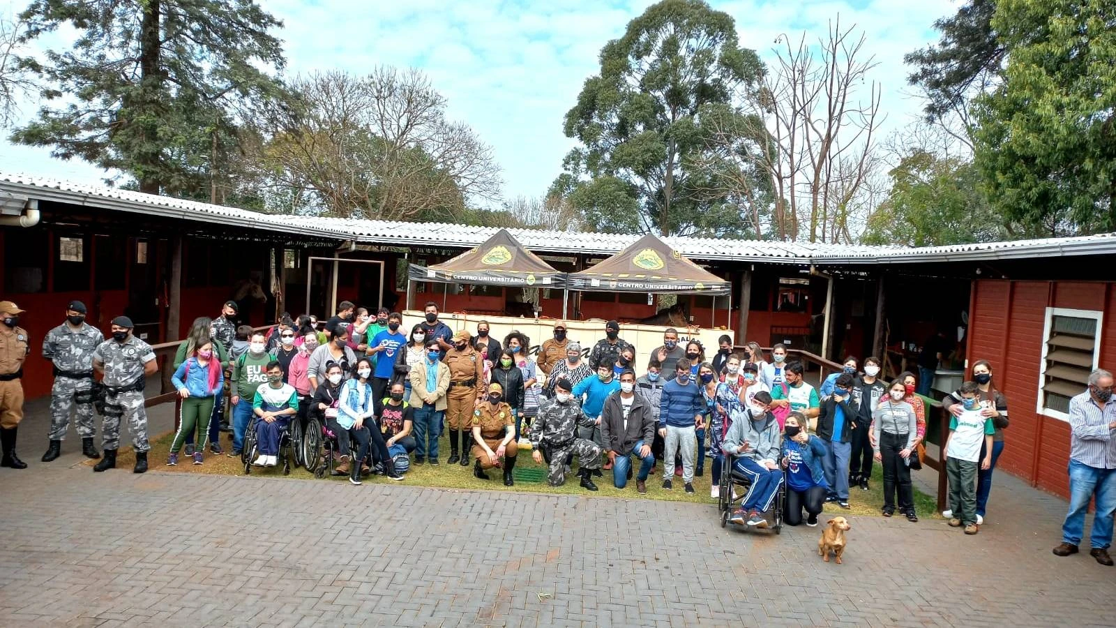 Mais de 30 atletas participaram realizando passeios com viaturas, interagindo com os cães do Canil Setorial e praticando as atividades de equoterapia oferecidas pela Cavalaria do 6° BPM.