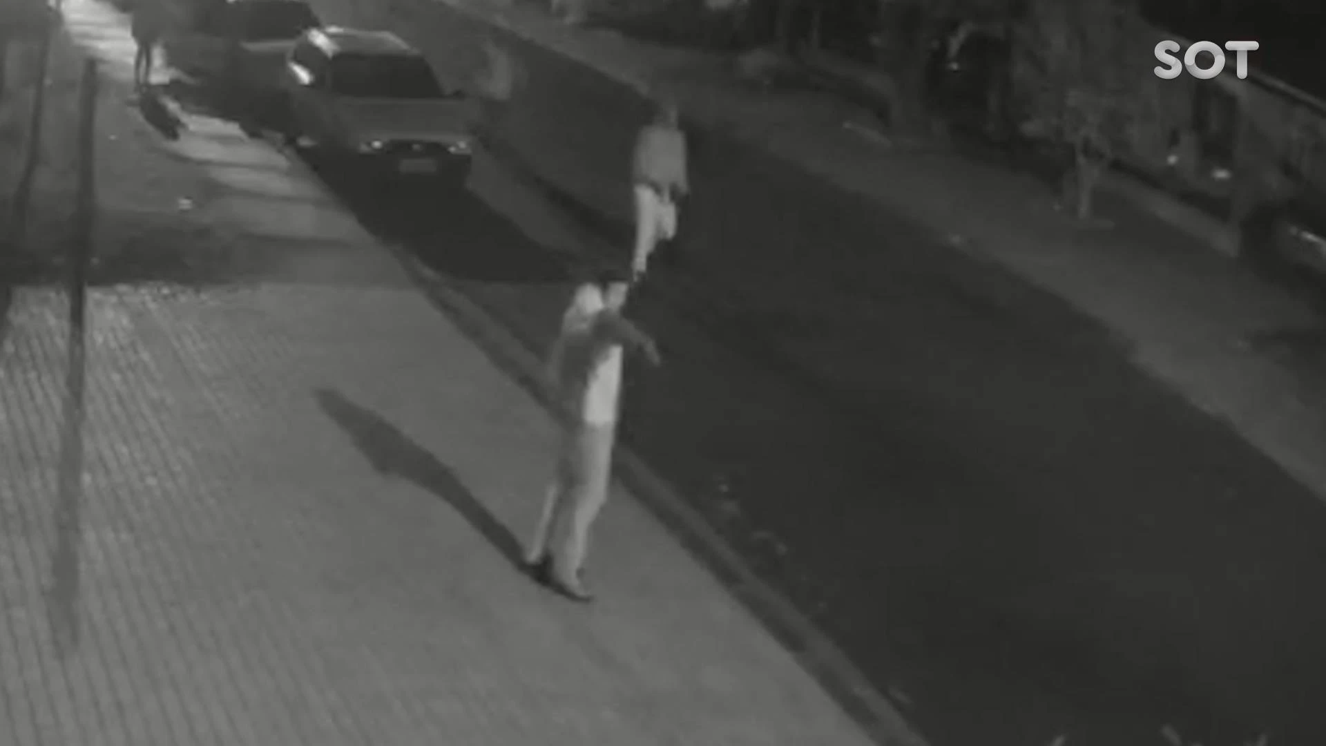 Nas imagens é possível ver o momento exato em que várias pessoas correm pela via, atrás de um motociclista, que sobe sobre a calçada e outros dois homens efetuam vários disparos contra eles, que fogem na sequência.