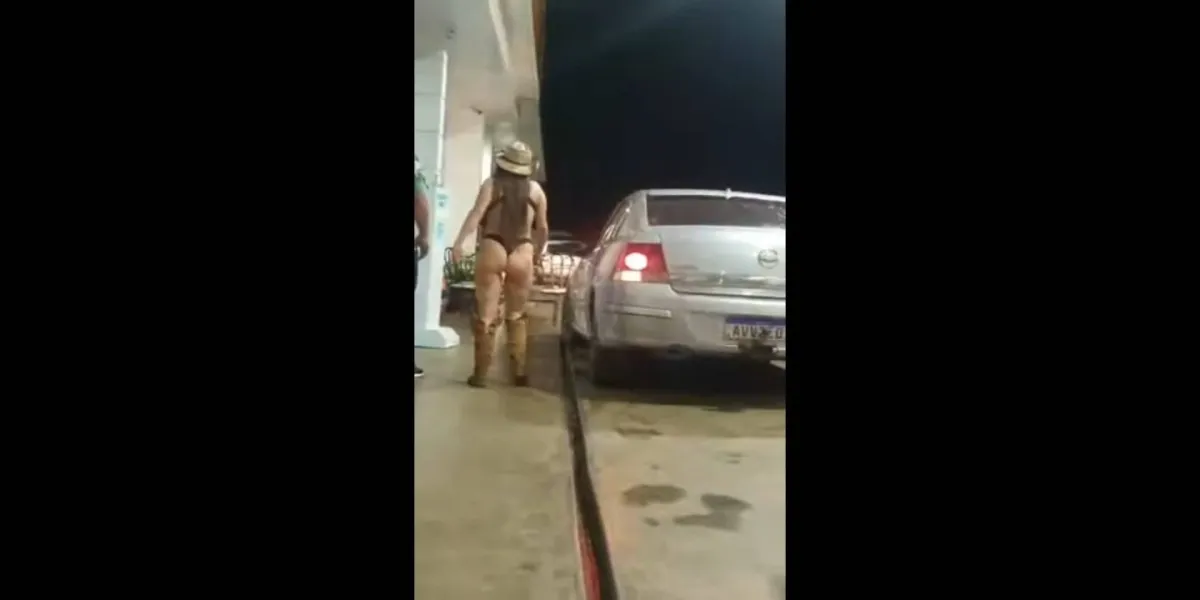 Mulher é flagrada só de calcinha e sutiã em posto de gasolina em Laranjeiras do Sul