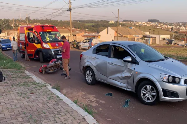 Um motociclista ficou ferido na tarde desta quarta-feira (18), após uma colisão de trânsito no Loteamento Florais do Paraná, em Cascavel.
