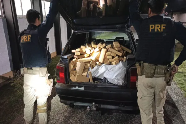 Ao vistoriar o veículo, a equipe localizou sobre os bancos e no porta-malas diversos tabletes de maconha, totalizando 226 kg da droga.