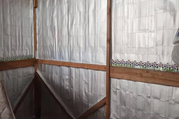 Caixas de leite são muito mais que apenas papelão. Para manter o alimento protegido e próprio para consumo, elas têm várias camadas de plástico, alumínio e papelão em sua composição. Isso faz delas um ótimo isolante térmico, ideal para solucionar um problema comum nas grandes cidades: o vento que entra pelas frestas de casas de madeira em muitas comunidades. O projeto Brasil Sem Frestas, que nasceu em Passo Fundo, no Rio Grande do Sul, utiliza essas caixinhas para vedar as casas de famílias que, sem esse recurso, passariam frio. Depois de abertas, as caixinhas são costuradas umas às outras e viram placas que, instaladas do lado de dentro das paredes, impedem o vento e a chuva de entrar.