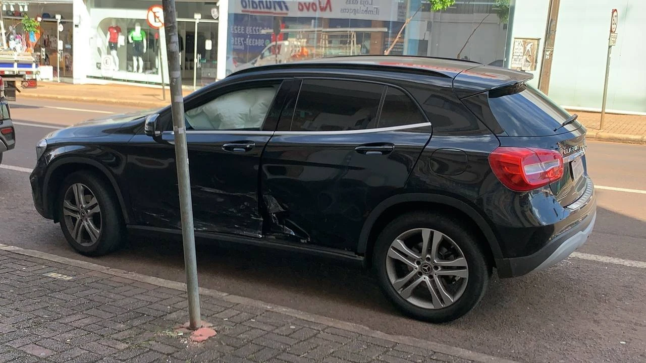 A colisão envolveu um automóvel Honda Civic e um Mercedes-benz Gla 200, no cruzamento das Ruas Rio Grande do Sul com Duque de Caxias.