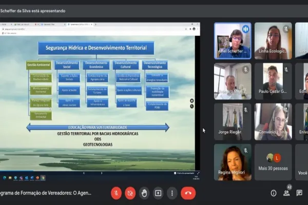A Itaipu Binacional promoveu, na última segunda-feira (23), um encontro virtual com os presidentes e vice-presidentes das Câmaras de Vereadores dos 55 municípios da área de atuação da empresa. A atividade faz parte do “Programa de Formação de Vereadores: o Agente Público do Século 21”, que pretende chamar a atenção para o tema e conectar as ações do legislativo e do executivo municipais aos Objetivos de Desenvolvimento Sustentável (ODS) da Organização das Nações Unidas (ONU).