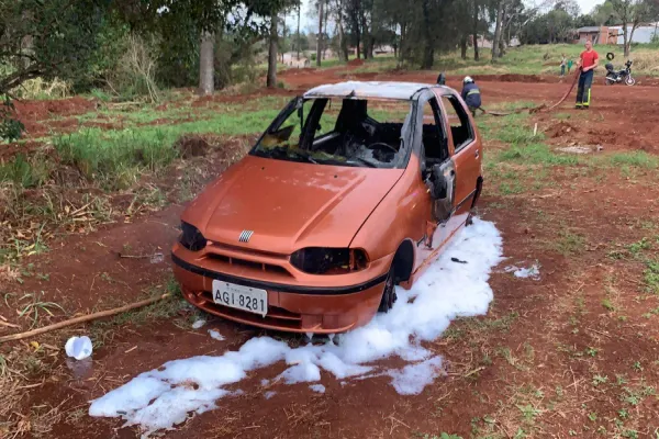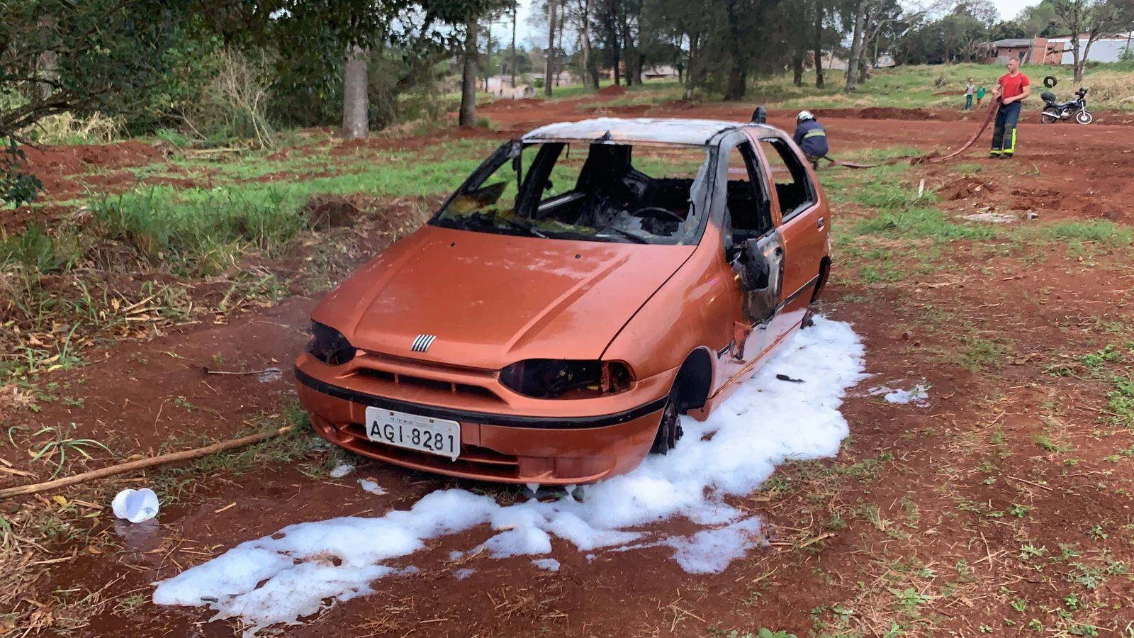 Um automóvel Fiat/Palio ficou completamente destruído no final da tarde deste sábado (28), após um incêndio no Loteamento Jardim Clarito em Cascavel.