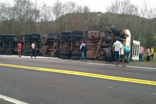 Uma equipe da Polícia Rodoviária Federal esteve no endereço registrando a ocorrência e Infelizmente a carga do veiculo foi saqueada.