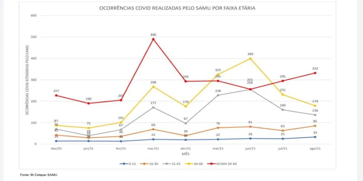 No mês seguinte, agosto, o registro de pessoas acima dos 60 anos cresceu ainda mais: 332. Entre 46 anos e 60 anos, 179; entre 31 anos e 45 anos, 136; entre 16 anos e 30 anos, 85; e abaixo dos 15 anos, 33. A estatística aponta ainda estabilidade no número de ocorrências covid-19, após queda verificada entre junho e julho.
