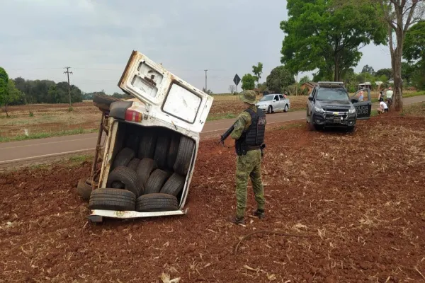 BPFRON apreende pneus contrabandeados após capotamento em Pato Bragado