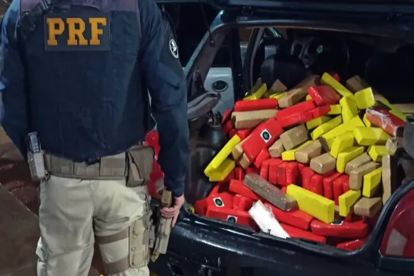 Ao vistoriar o veículo, a equipe localizou sobre os bancos e no porta-malas diversos tabletes de maconha, totalizando 165 kg da droga.