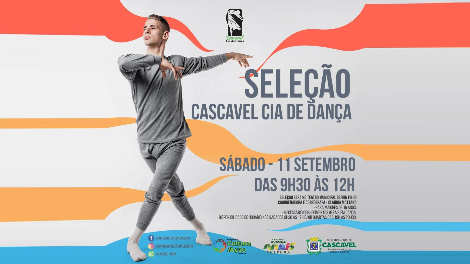 A Cia de Dança de Cascavel abriu, na última quarta-feira (1º), as inscrições para sua audição que irá selecionar os 10 participantes. As inscrições encerrarão na sexta-feira (10) e a seletiva será no próximo sábado (11) das 9h30 às 12h no Teatro Municipal Sefrin Filho.