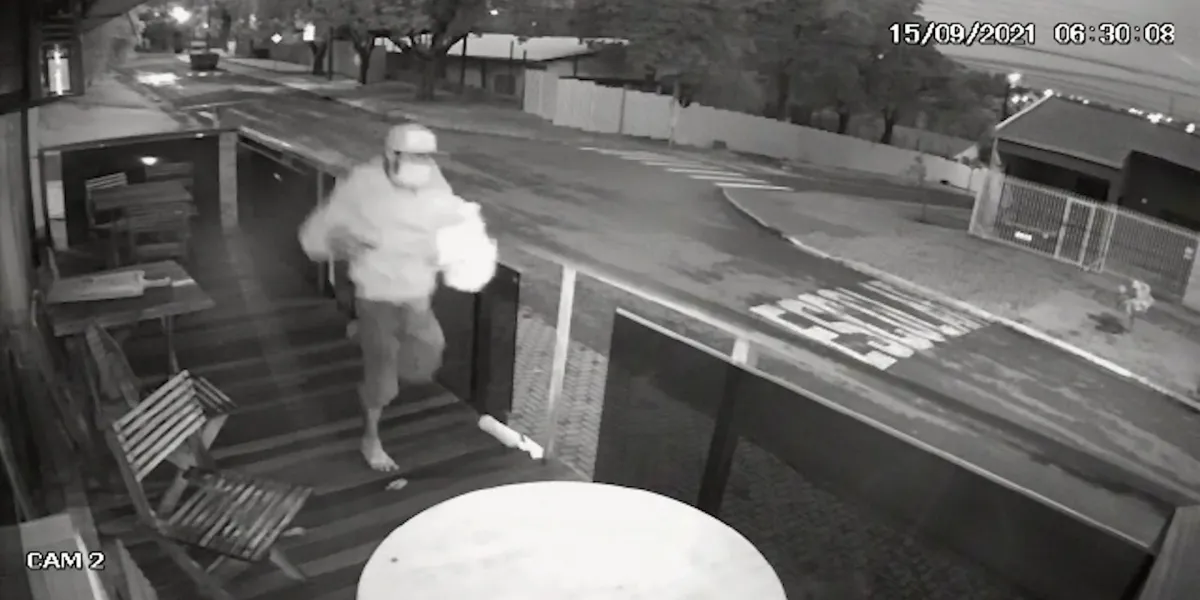 Nas imagens é possível ver um indivíduo se aproximando do local em uma bicicleta, momentos antes do crime. Ele sai e retorna minutos depois e invade o comercio, furtado algumas bebidas e objetos, fugindo pela sacada do imóvel.