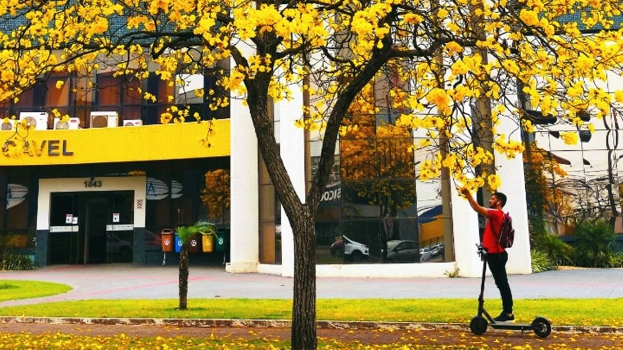 A fotografia de um ipê amarelo e abaixo dele um jovem, a bordo de um patinete elétrico, é a vencedora da primeira edição de um concurso inédito lançado pelo Setor da Qualidade da Associação Comercial e Industrial de Cascavel. O anúncio dos vencedores do prêmio Árvores de Cascavel foi feito na tarde desta terça-feira, 21 de setembro, quando se comemora o Dia da Árvore e que marca também a mudança do inverno para a primavera, a estação mais florida e colorida do ano.