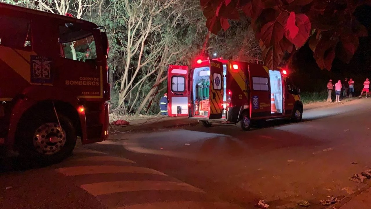 Após carro colidir em árvore, mulher cai em barranco no Bairro Cancelli em Cascavel