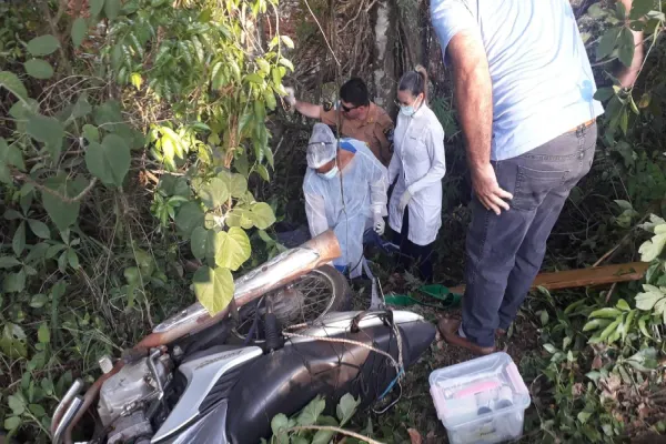 Os militares de Três Barras foram acionados por um funcionário da prefeitura que presenciou o acidente e encontrou o motociclista em uma valeta com cerca de dois metros de profundidade.