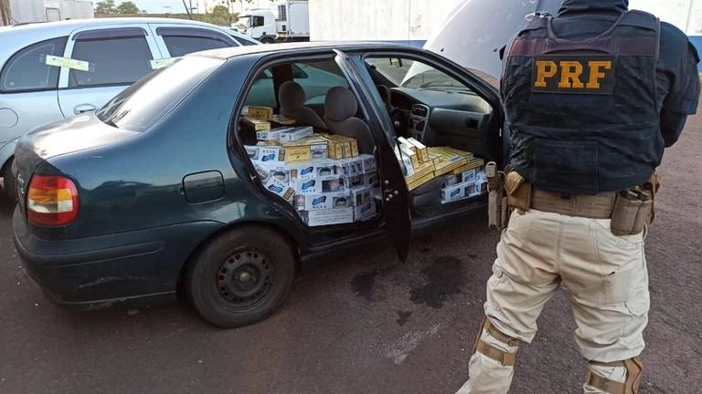 Durante a Operação Égide, policiais rodoviários federais abordaram um motorista que conduzia um Fiat Siena, lotado com cerca de 10 mil maços de cigarros contrabandeados do Paraguai.