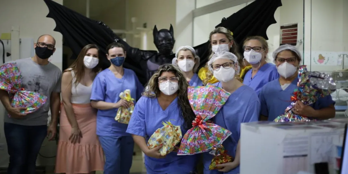 As crianças internadas no Hospital Universitário do Oeste do Paraná (Huop) tiveram um Dia das Crianças recheado com sorrisos, entrega de presentes, pizzas e muito carinho. Os brinquedos entregues para as crianças foram arrecadados através de doação de servidores, empresas e da população em geral, e quem fez a entrega hoje foi o Batman e a Princesa Bela. “O Julio já amanheceu bem melhor com as surpresas nessa semana aqui, ficou muito feliz quando viu os brinquedos e o que mais ele gosta é pizza, então está muito faceiro, e criança é assim, quando está feliz vai melhorando. Foi muito bom ver isso, as crianças que estavam com a autoestima baixa antes agora estão bem mais felizes”, diz a mãe do Júlio Natanael Alves de Oliveira, Franciele Regina de Oliveira.