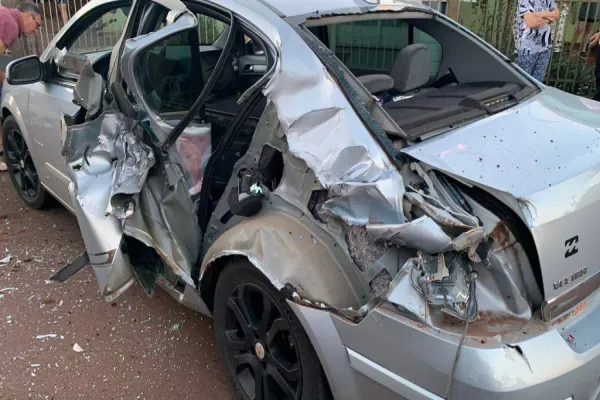 Após a colisão o condutor do trator guardou o veículo e voltou ao local da batida, o carro ficou com a lateral destruída, o Vectra estava estacionado em via pública e dentro do carro não havia ninguém.