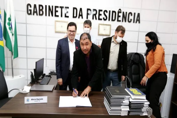 A assinatura do termo de posse, por Joceh e pelo presidente Alécio Espínola (PSC), contou também com a presença dos vereadores Josias de Souza..