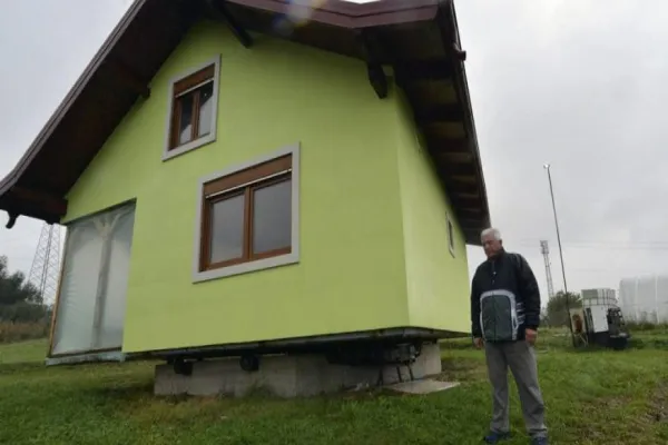 Kusic, que não teve oportunidade de fazer faculdade, projetou e construiu sozinho sua casa giratória, usando motores elétricos e as rodas de um antigo veículo de transporte militar.