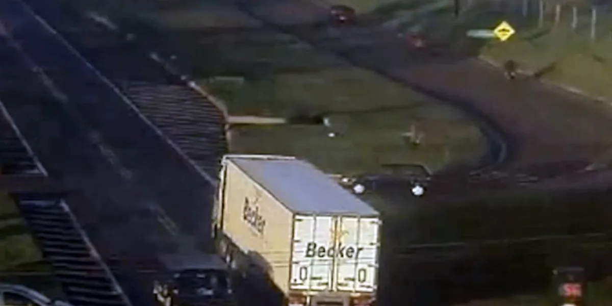 Câmera de monitoramento registra acidente entre carro e caminhão na BR-277 em Cascavel