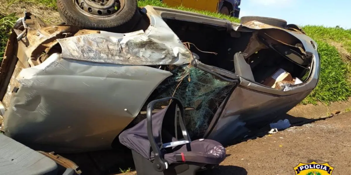 Segundo informações, pai, mãe e um bebê de um ano de idade ocupavam um Corsa, que seguia sentido Campo Mourão - Cascavel (PR). Em dado momento, a banda de rodagem de um dos pneus se soltou e o carro capotou. Do acidente, resultou ferimentos na mãe da criança, que foi removida via aeronave para atendimento hospitalar. Graças ao uso correto da cadeirinha, o bebê, uma menina de apenas um ano de vida, nada sofreu.