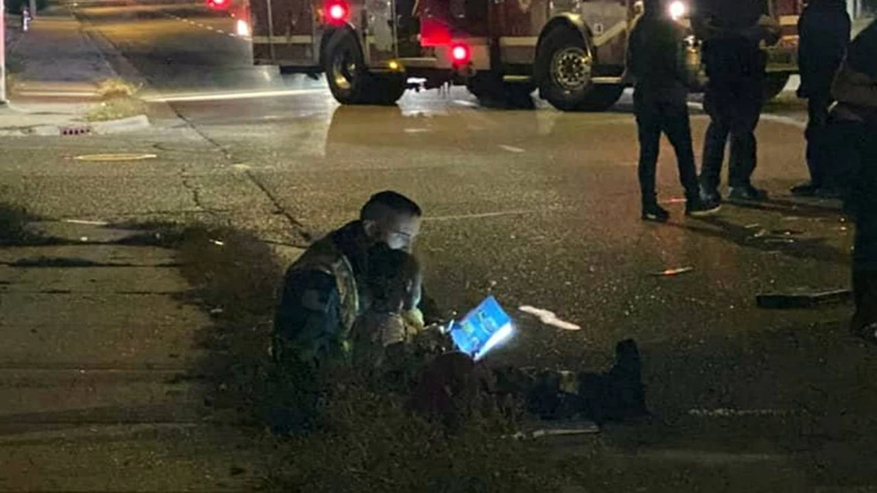 Bombeiro lê livro para menina assustada para confortá-la após acidente de carro