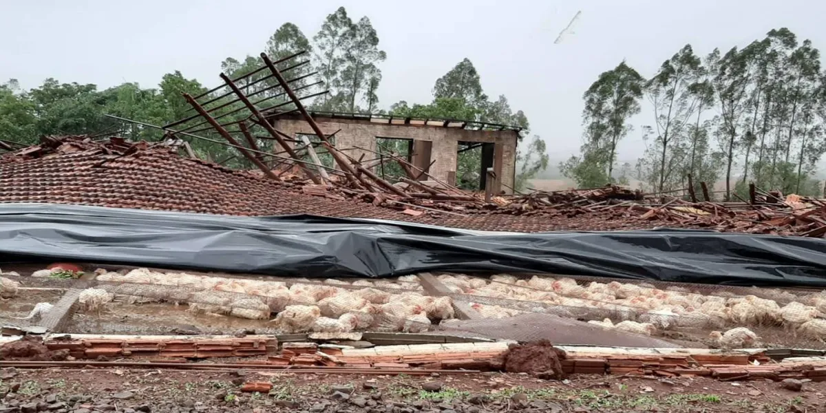 Mais de 20 mil frangos foram perdidos na tarde deste sábado (23), após o temporal que caiu na comunidade de Ramal Balu em Assis Chateaubriand